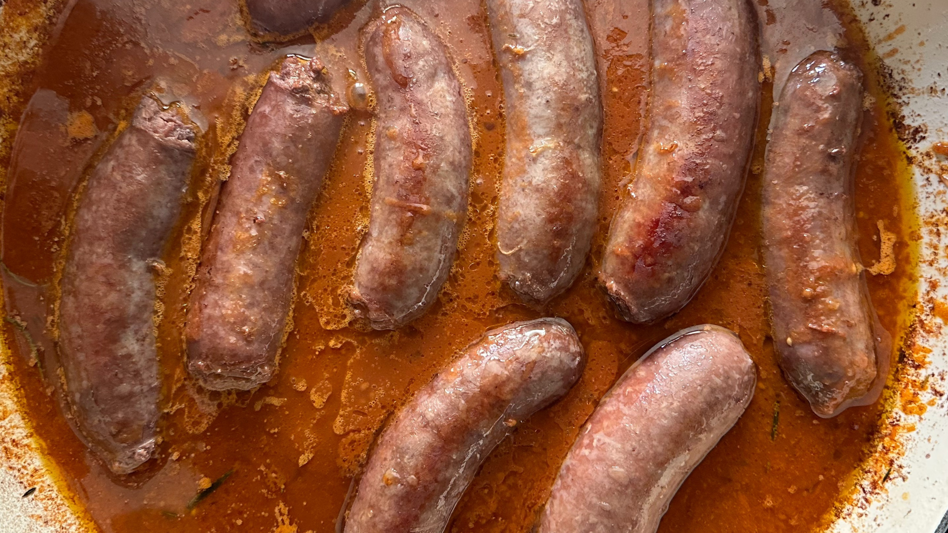 È fondamentale avere un tegame di circa 30cm di diametro: tutte le nostre salsicce dovrebbero starci comodamente senza sentirsi ‘ammassate’.